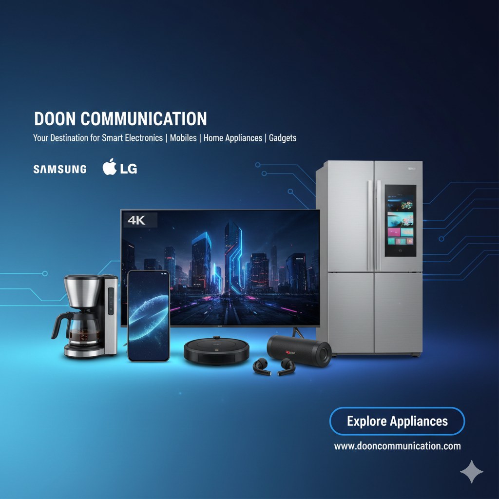 At Doon Communication, we believe that technology should be accessible, reliable, and tailored to your lifestyle. Established in the heart of Dehradun, we have grown into a premier destination for the latest smartphones, cutting-edge gadgets, and high-quality home appliances.
