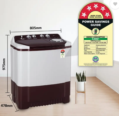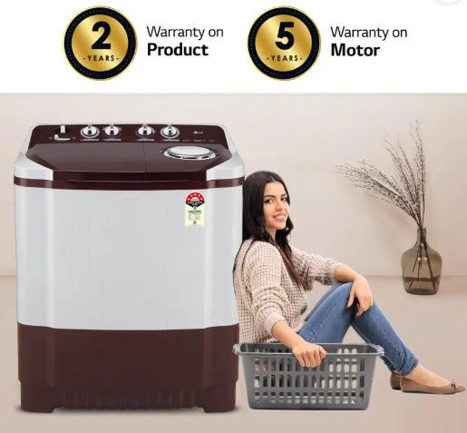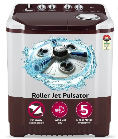 YOU CAN CONVENIENTLY WASH LAUNDRY IN THE LG P8035SRAZ 8 KG SEMI-AUTOMATIC TOP-LOADING WASHING MACHINE. THE ROLLER JET PULSATOR OF THIS APPLIANCE BOOSTS FRICTION IN THE TUB TO CLEAN CLOTHES EFFECTIVELY. AND, THE WIND JET DRY FEATURE OF THIS WASHING MACHINE ROTATES THE SPIN TUB AT HIGHER RPMS TO REMOVE MOISTURE FROM CLOTHES. BY OFFERING FOUR WASH PROGRAMMES, THIS WASHING MACHINE CAN EFFECTIVELY WASH DIFFERENT TYPES OF GARMENTS. AND, THANKS TO ITS LINT FILTER COLLECTS AND REMOVES LINT AFTER WASHING CLOTHES.